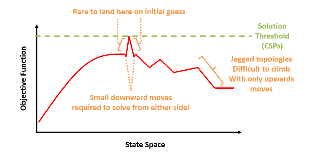 - CSPs wherein there may be many local optima but few global optima (mutation can help “jump” to better problem states).