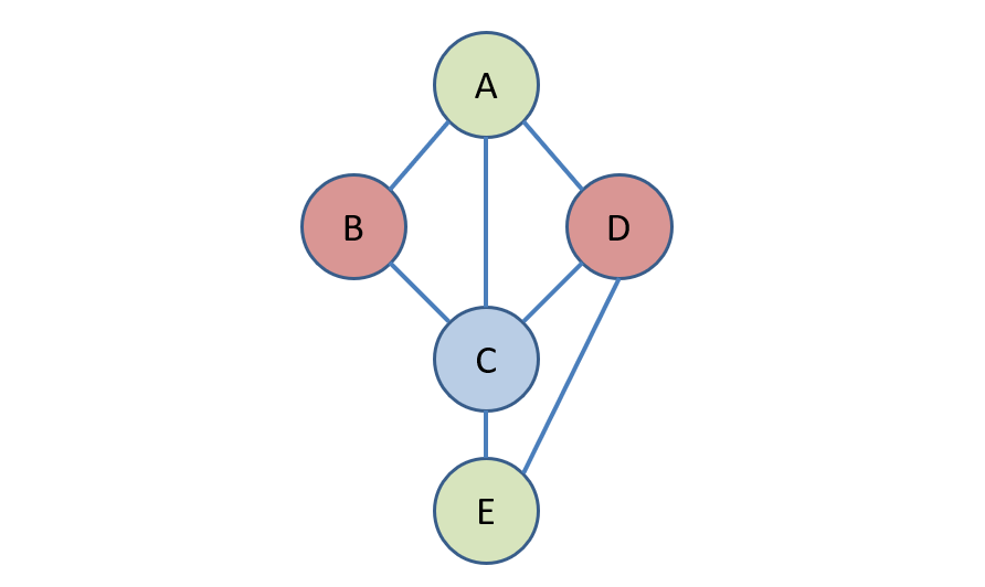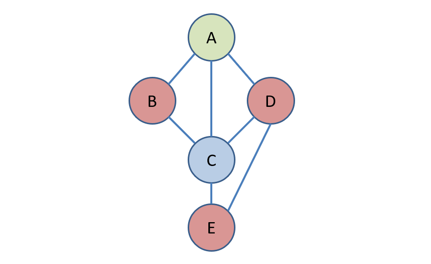 Step 1 - Random Variable Assignment: Suppose we begin by assigning the following colors to the variables in the CSP; note: they do not form a solution, but are close to one.
