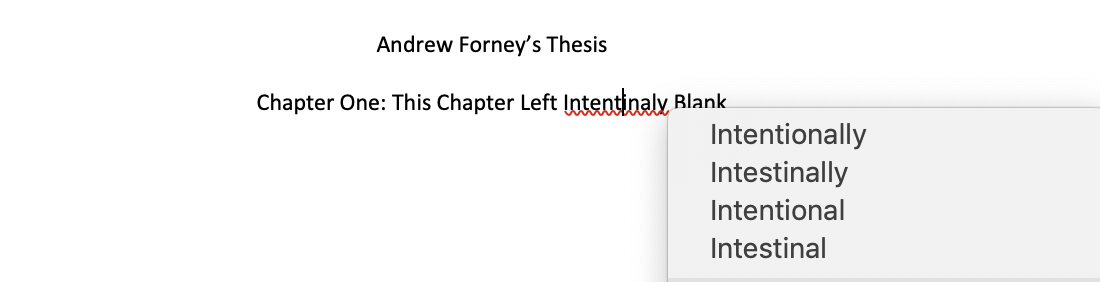 Take a look at the example from Microsoft Word with the word “intentionally” misspelled: